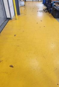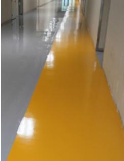 The scope of work includes the complete removal of all existing floor coatings, followed by routing out cracks and repairing minor concrete damage. Once the surface is prepared, Elast-o-coat and NO-Sag #1 will be applied to all joints and cracks. A moisture-mitigating primer will then be installed to prevent future issues. This will be followed by the application of an intermediate coat and a top coat using the Duraflex epoxy system. The coating will feature Dur-a-gard in medium grey and bright yellow, enhanced with a Superstick additive for improved adhesion. To complete the system, an Armor Top gloss finish will be applied, incorporating Part C grit and Dur-a-grip for added traction and durability.